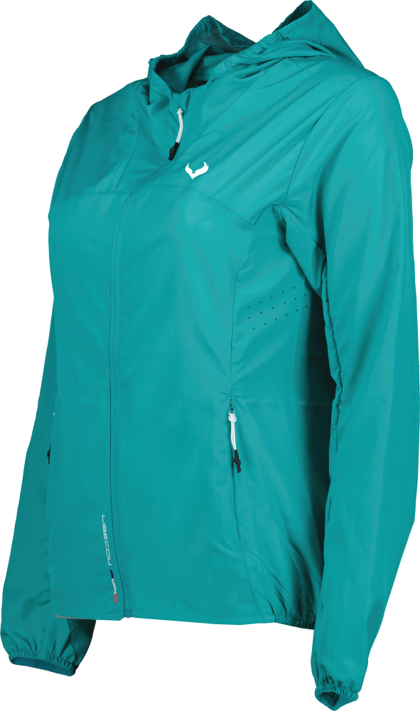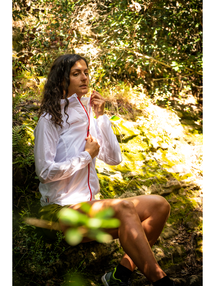 Coupe-vent ultra light, déperlant, perforations laser stratégiquement placées pour une circulation d’air optimisée, élastiques latéraux pour une liberté de mouvement parfaite.