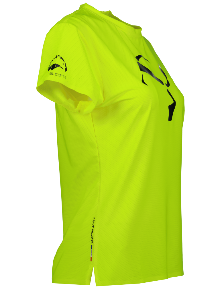 Ultra-light floating two-material T-shirt, cut designed for maximum fluidity and freedom of movement.