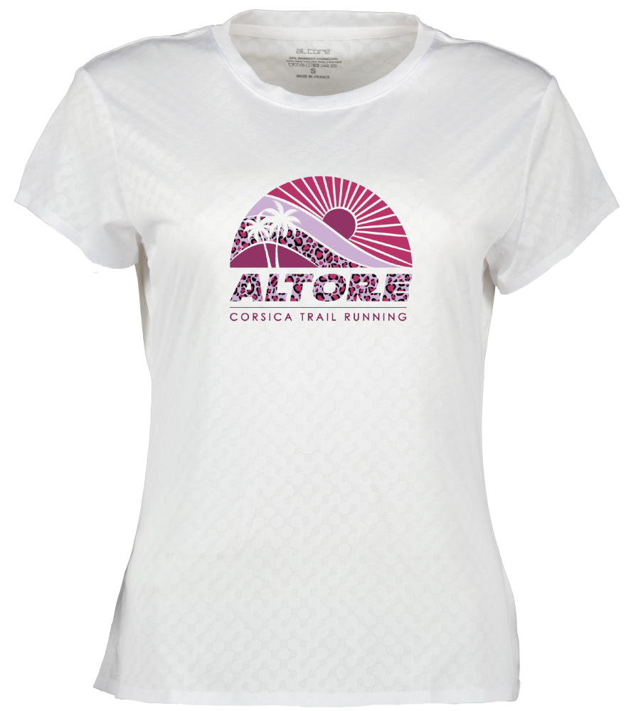 Ultra-light floating two-material T-shirt, cut designed for maximum fluidity and freedom of movement.