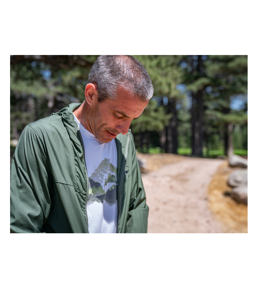 Coupe-vent ultra light, déperlant, perforations laser stratégiquement placées pour une circulation d’air optimisée, élastiques latéraux pour une liberté de mouvement parfaite.