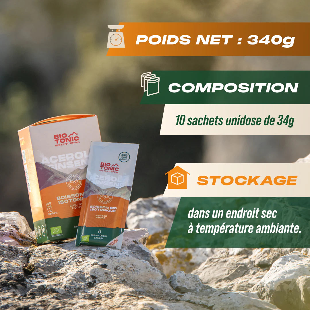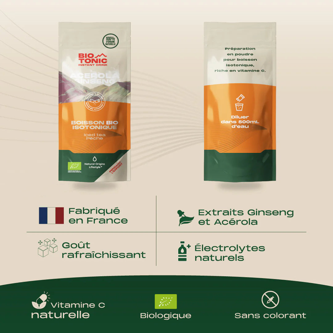 BioTonic Iced-Tea pêche - LA Boisson Énergétique Isotonique Bio 100% Naturelle - Natural Origins